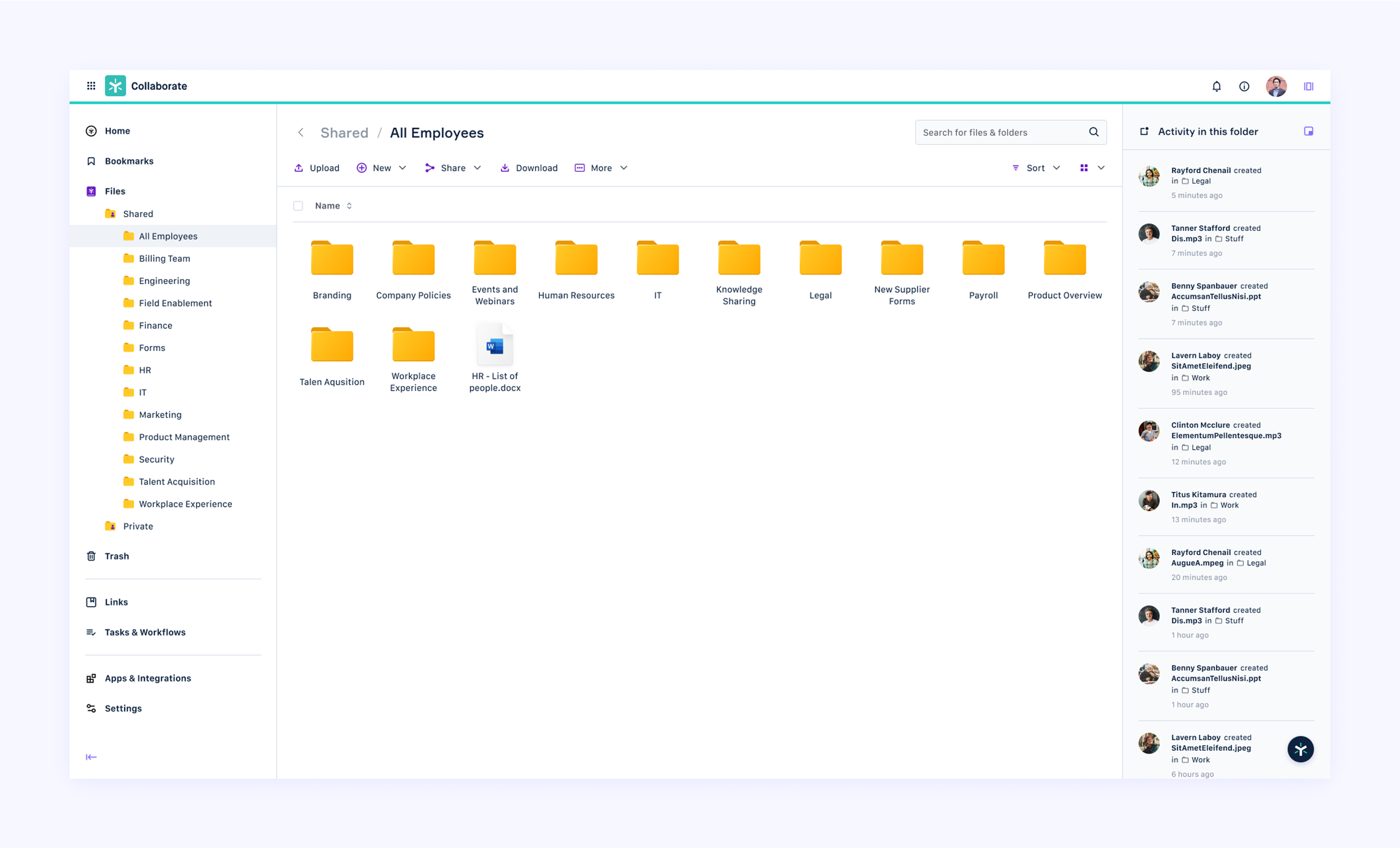 Typography and iconography reflected a clean, modern sensibility, while customization options allowed users to tailor the experience to their brand preferences. One standout element was the navigation redesign, we gave users options like a collapsible navigation tree that mimicked familiar systems such as Dropbox or file explorer interfaces. This eased onboarding and helped users adapt quickly, even amid big visual changes.