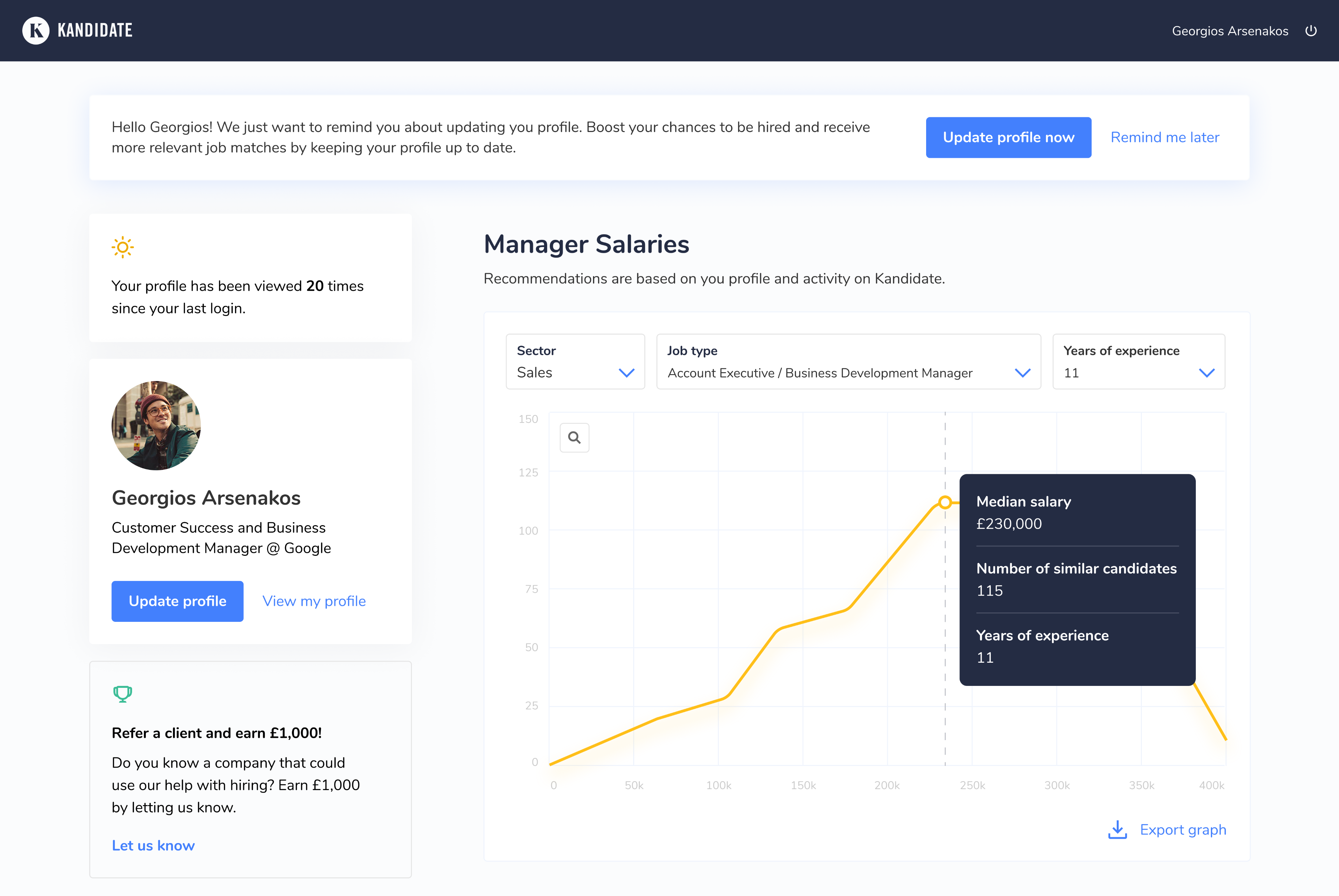 The Product Owners were always open to conversation. We talked about new features and the broader vision behind Kandidate. While I wasn't in charge of the product journey maps, I contributed to feature design and often brought ideas to the table.
